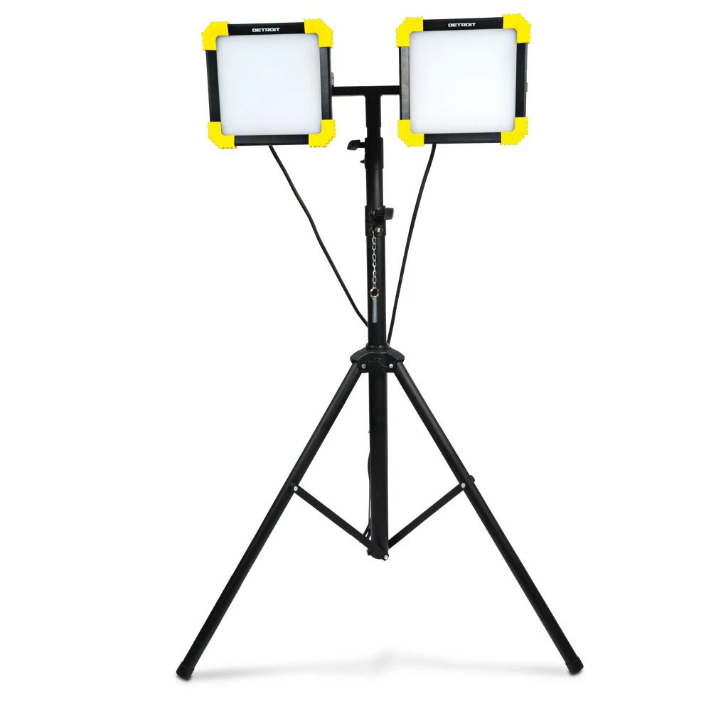 This kit comes with 2 x DETROIT 2400 Lumen LED Worklights, dual light mounting bracket and a tripod that’s extendable from 1m to 1.8m.