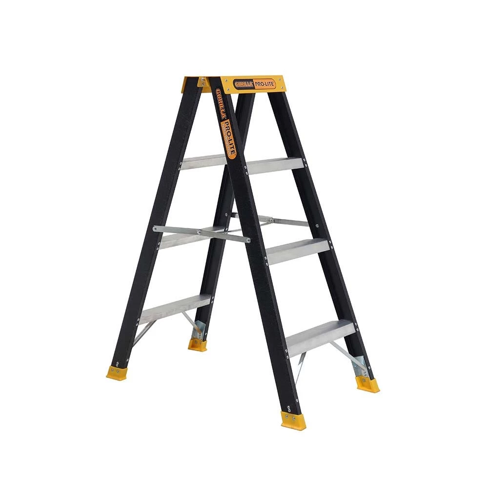 The Pro-Lite range is Gorilla’s lightest ever ladder range. Lightweight and easy to carry and features an aluminium top cap, cross braced speader and anti slip treads and feet. The Fibreglass construction provides electric resistance and isolation, reducing (but not eliminating) the risk of electrocution when working in an electrical environment. The 150kg Industrial load rating makes it suitable for DIY and trade use.
