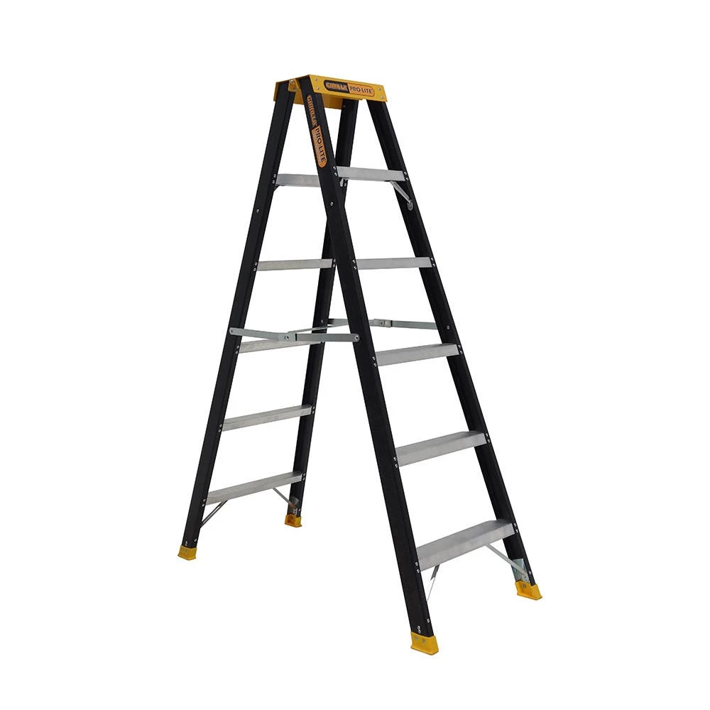 The Pro-Lite range is Gorilla’s lightest ever ladder range. Lightweight and easy to carry and features an aluminium top cap, cross braced speader and anti slip treads and feet. The Fibreglass construction provides electric resistance and isolation, reducing (but not eliminating) the risk of electrocution when working in an electrical environment. The 150kg Industrial load rating makes it suitable for DIY and trade use.