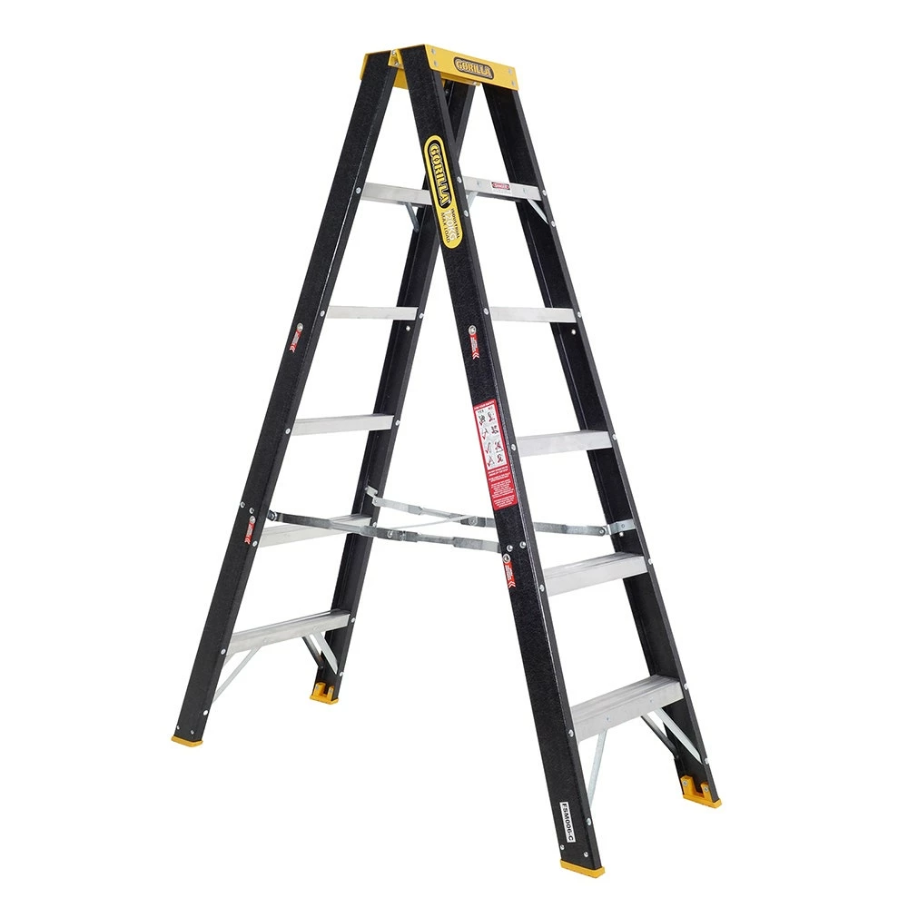 - Double Sided A-frame Ladder 1.8m (6ft) Black Fibreglass 120kg Industrial