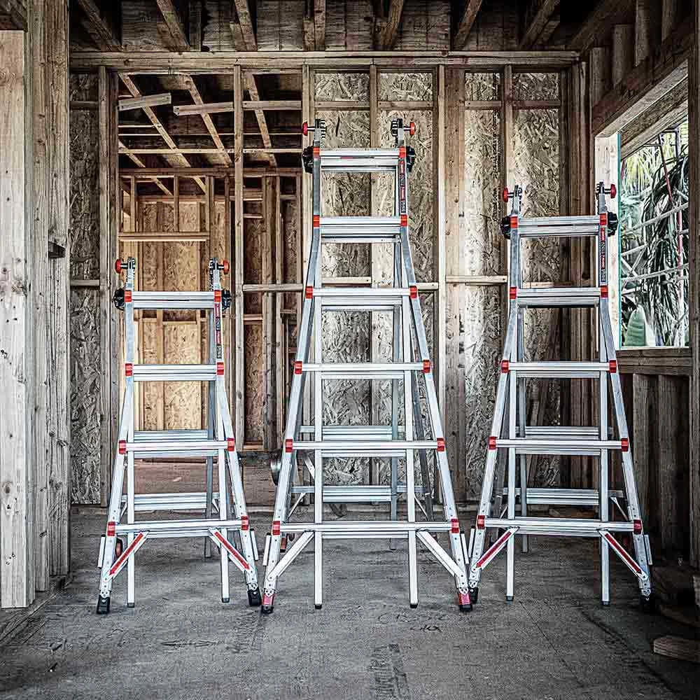 - Dozens of configurations – multiple sizes of A-Frame stepladder, extension, 90-degree and scaffolding positions