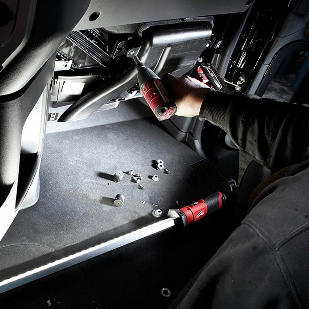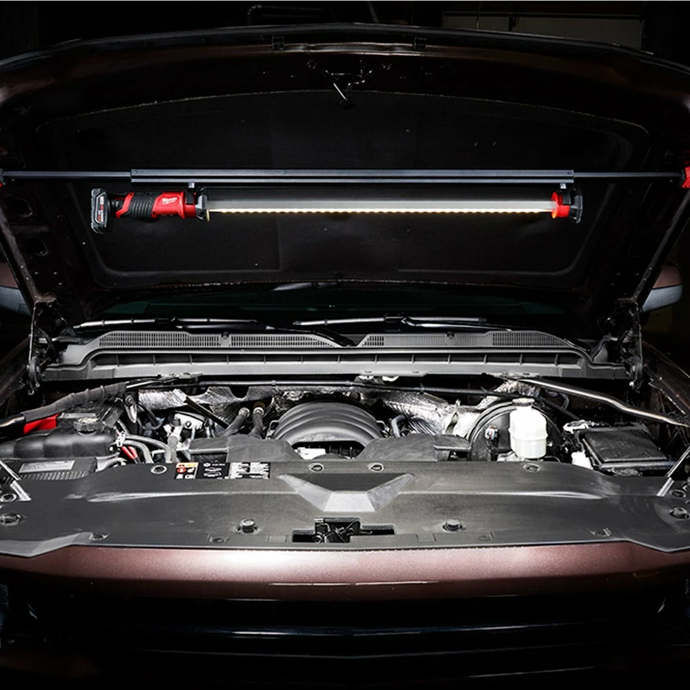 With more gripping surface, get more contact for better positioning when mounting underhood, undercarriage or elsewhere. Rotate, slide, remove and hang the light bar for added flexibility and versatility. The carrier extends 122cm – 198cm covering wide cars and trucks, perfect for mechanics working in automotive work shops. Get up-to 8 hours of runtime when powered by a M12 REDLITHIUM-ION 4.0ah Battery. Built to withstand the toughest environments, this light is impact and chemical resistant, and covered by our 5 Year Tool Warranty as well as a Limited Lifetime LED warranty.