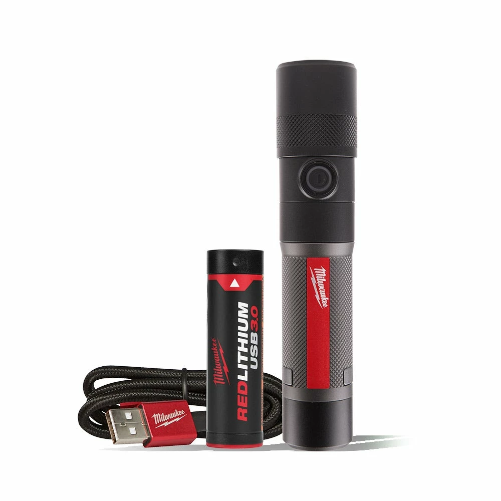 The MILWAUKEE® USB Rechargeable 1100L Twist Focus Flashlight is powered by the REDLITHIUM™ USB 2.0AH Battery, providing all-day run-time, more recharges, and faster charge time. The MILWAUKEE® REDLITHIUM™ USB Battery can be recharged in the flashlight via Micro USB or swapped out with additional REDLITHIUM™ USB Batteries for virtually no downtime. The 1100 Twist Focus Flashlight is covered by a limited lifetime warranty.