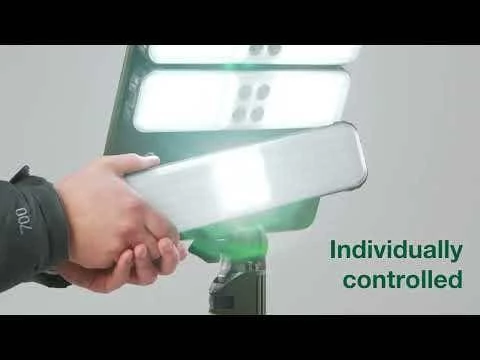 Perfect for camping or the work site , this lightweight and durable portable solar light is a must have travel accessory. The light features three seperate LED pannels that can be used individually in a number of different configurations with multiple light settings and adjustable brightness options or all together as a single module. There are three convenient charging options, 240V, 12V and Solar. The uint is supplied with an adjustable tripod that allows the light to be set between 1 and 2 meters high and all this is packaged in a durable PVC carry case.