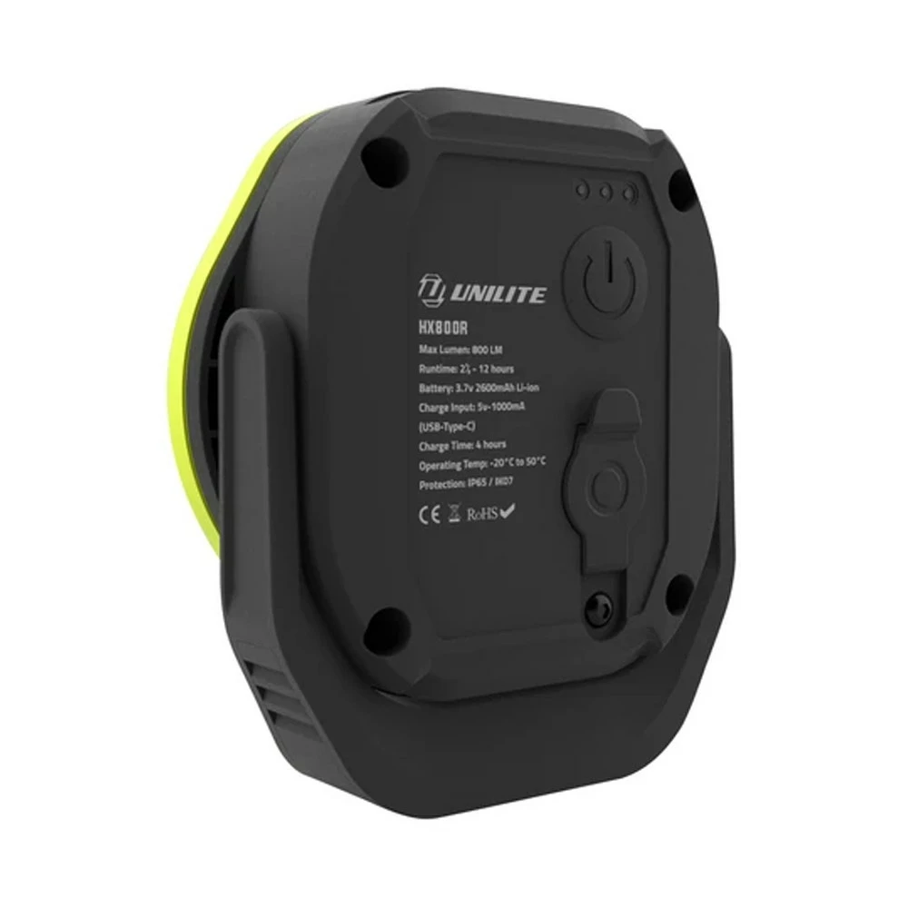 The HX800R is a compact USB rechargeable work light with an 800 lumen output. Its dual LEDs provides both a flood and focused spot beam. Housed in tough nylon-polymer, its compact design features a 180° rotating magnetic base. An IP65 rating ensures ingress against both dust and water.